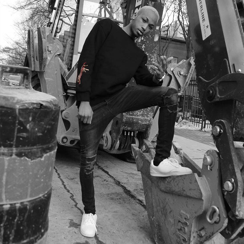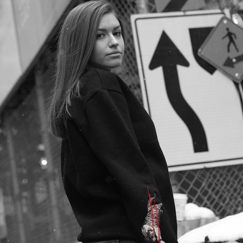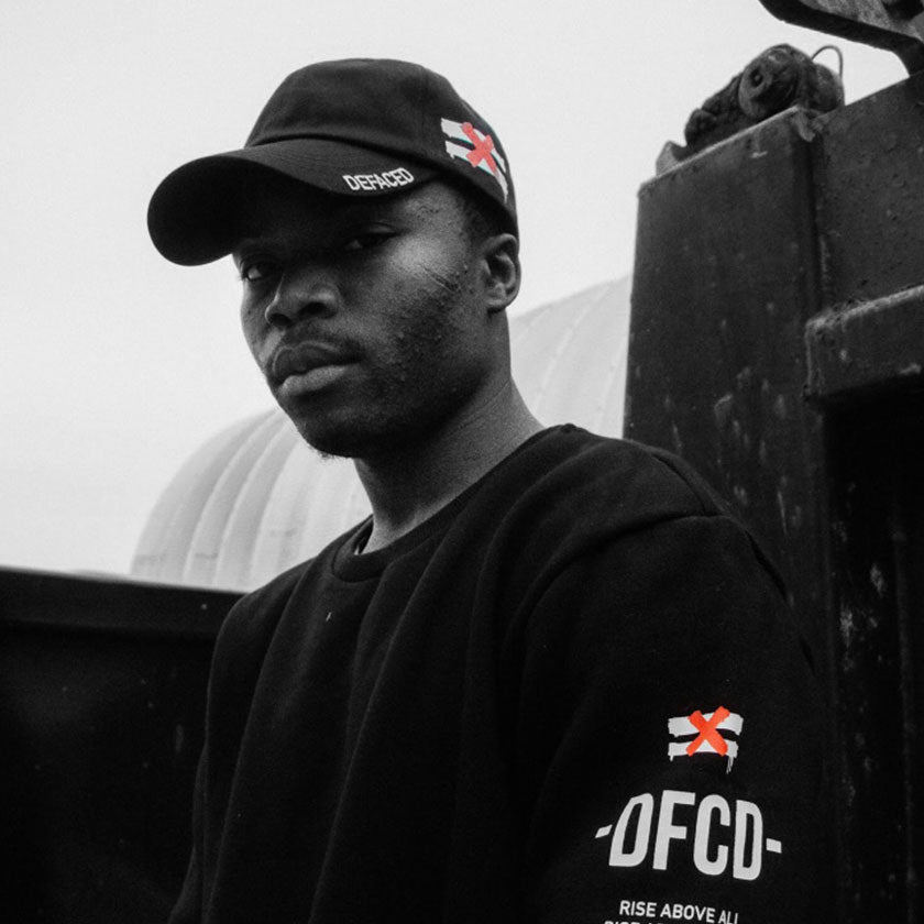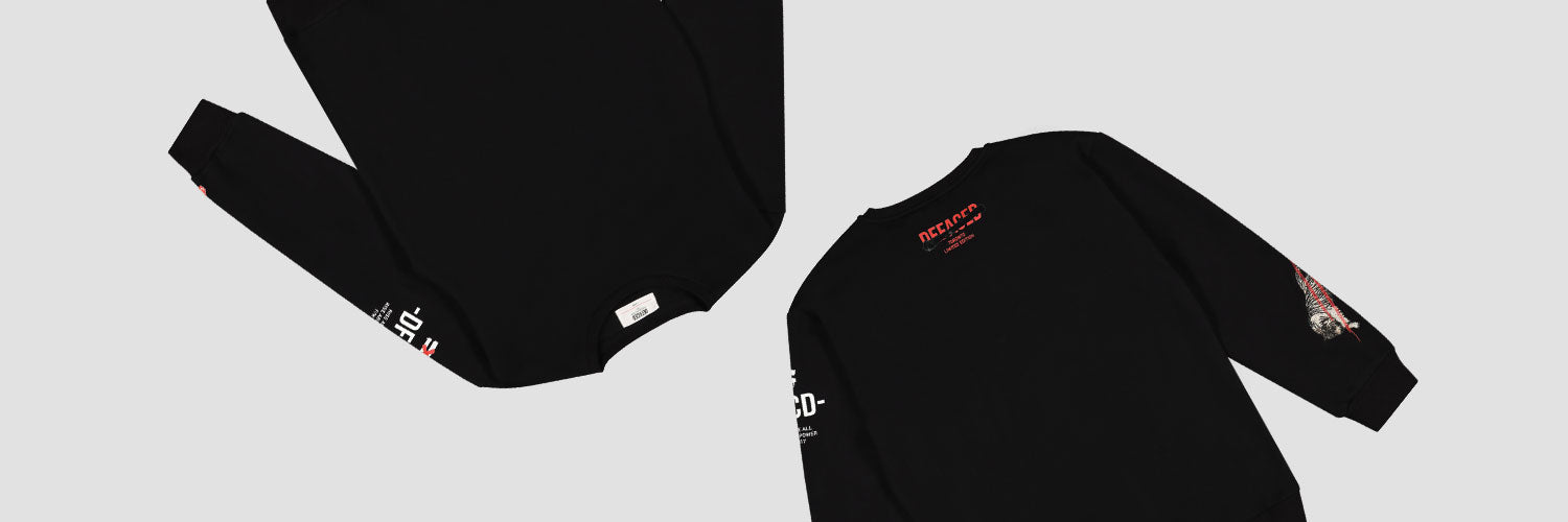 Long sleeve Defaced crewneck sweatshirt in black. Defaced print on the upper back. Power Tiger logo embroidered on the right arm. Defaced slogan print on top right arm & DFCD patch on the bottom of the left arm.
