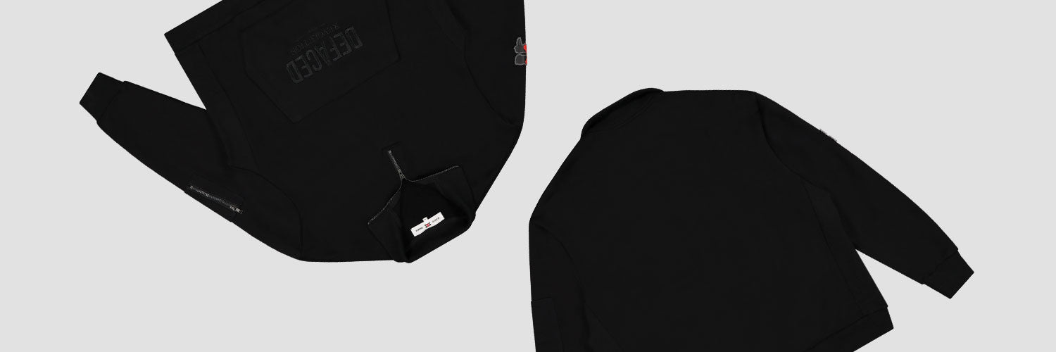 Long sleeve Defaced half-zip sweatshirt in black. Defaced embroidery on the front pocket. Unmatched logo labeled on the right arm.